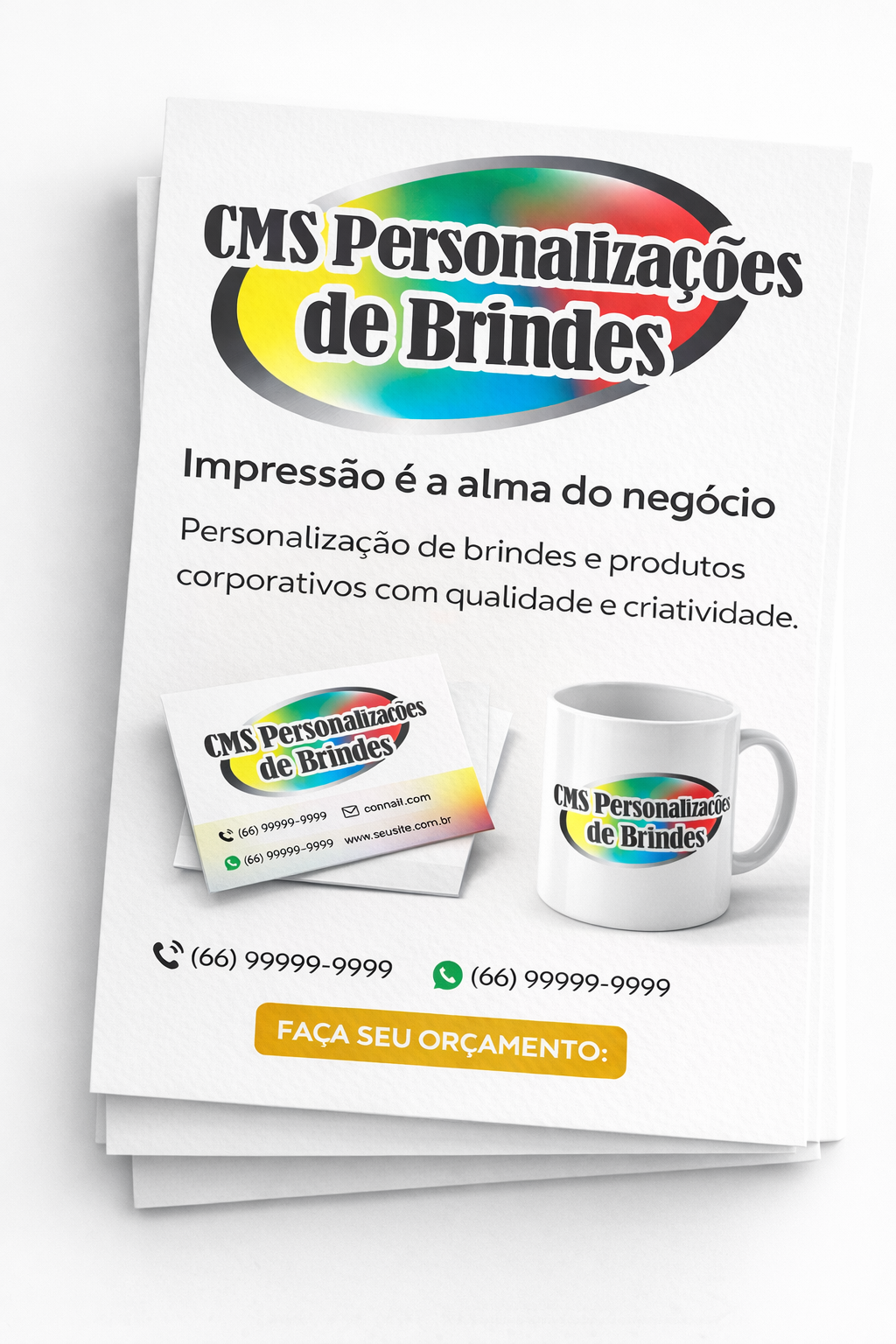 Um panfleto personalizado que destaca sua marca com qualidade e profissionalismo, ideal para campanhas promocionais. Este produto da CMS Personalizações de Brindes é feito sob medida, garantindo uma impressão clara e atraente para comunicar sua mensagem com eficiência.